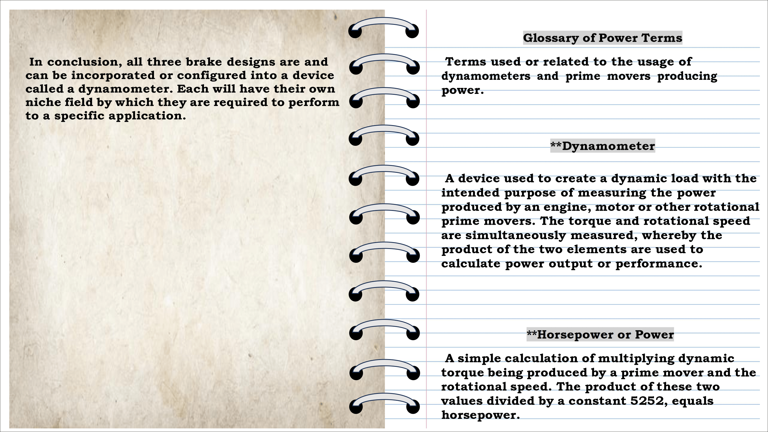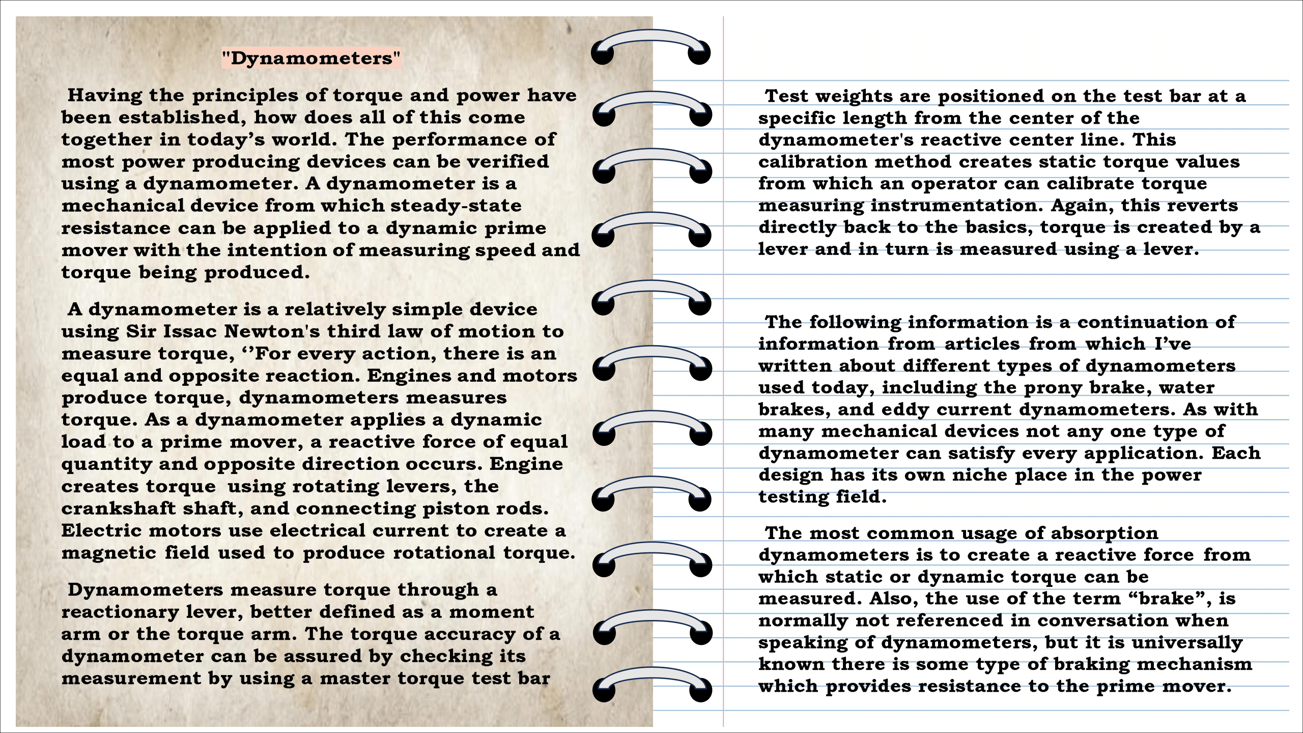 • Dynamometers Energy Power Torque Horsepower